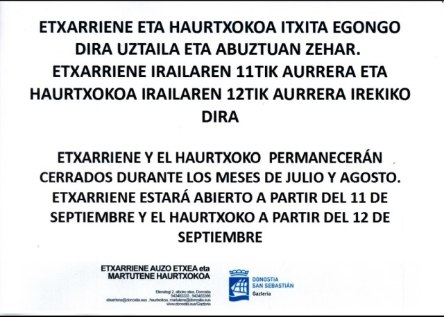Etxarriene eta Haurtxokoa itxita / Etxarriene y el Haurtxoko cerrados