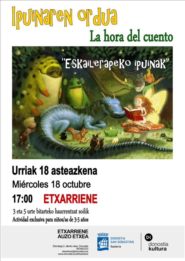 Archivado en Aisialdia/Ocio, Auzobizitza/Vida de barrio, Bizilagunak/Ciudadanos, Ekintzak/Actividades, Eragile sozialak/Agentes Sociales, Etxarriene, Iragarkiak/Anuncios, Partaidetza/Participación, Udaletxea/Ayuntamiento, Zerbitzuak/Servicios · Tagged with asteazkena, auzoa, barrio, cuento, etxarriene, haurrak, ipuina, martutene, miércoles, niñas, niños