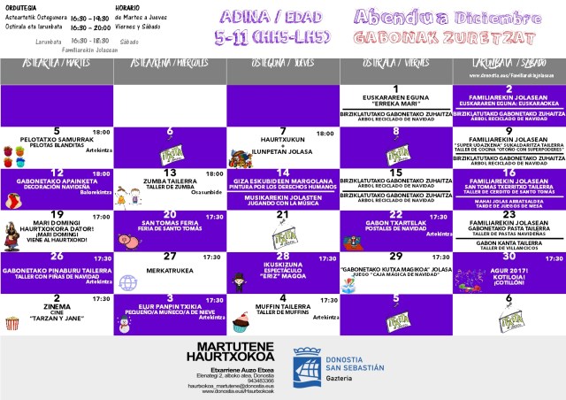 Haurtxokoa Martutene: Abenduko programazioa / programación de diciembre
