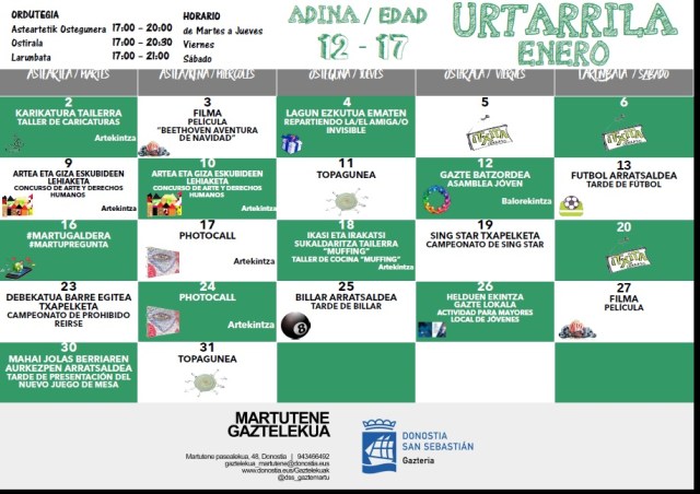 Gaztelekua Martutene: Urtarrileko programazioa / programación de enero