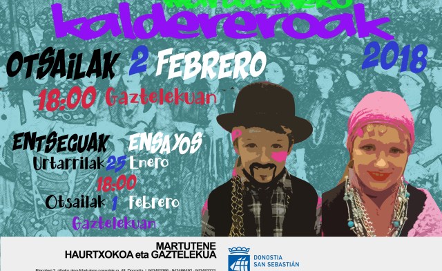 Las predicciones del tiempo para mañana a la tarde dan lluvia y frío. Por ello, los/as Caldereros/as de Martutene han decidido hacer un cambio de planes. La comparsa no paseará por las calles del barrio, pero mantiene su llamamiento para mañana a las 18:00 en el patio de la ikastola, y llevar a cabo un acto alternativo. En ese acto, cantaremos, bailaremos, leeremos el pregón, comeremos y beberemos lo preparado por las sociedades,… Al fin y al cabo, ¡daremos la bienvenida los/as Caldereros/as para que nos anuncien el Carnaval! ¡Animaos y acudid!