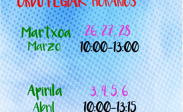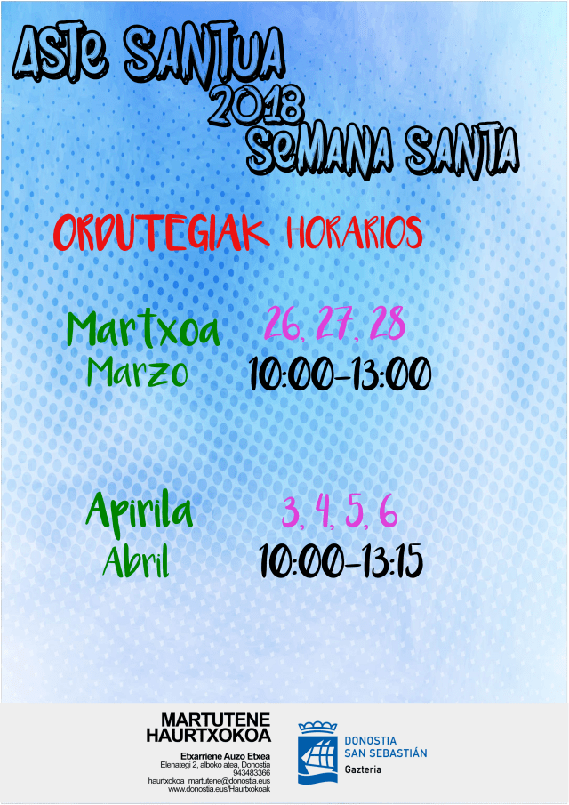 Haurtxokoko Aste Santuko ordutegia / Horario del Haurtxoko en Semana Santa