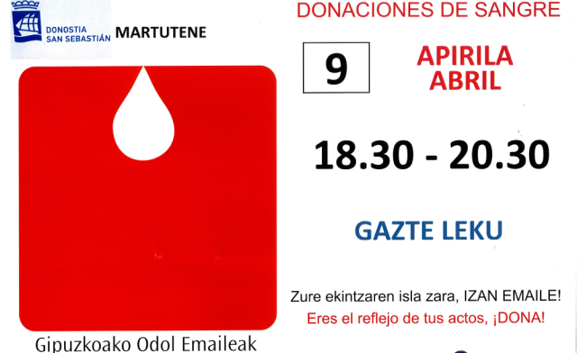 Gogoratu!!! Gaur Odol emaileak Martutenen / ¡¡Recuerda!! Hoy Donantes de sangre en Martutene