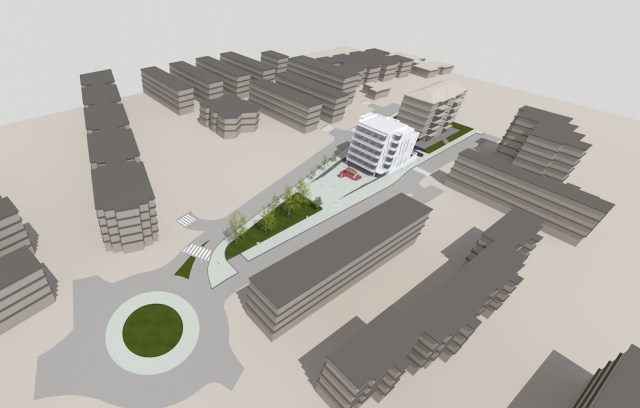 Horrez gain, Plan Orokorraren irizpideei jarraikiz, partzelaren iparraldea okupatuko da, eta hiri esparru libre komuna utziko da hegoaldean.