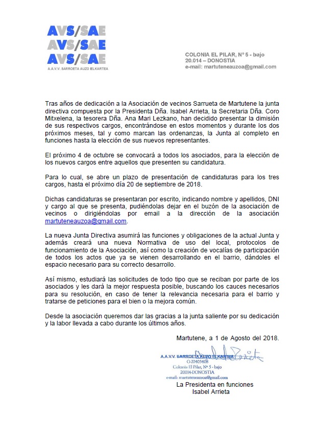 ← AA.VV. Sarroeta Auzo Elkartea – Hauteskunde deialdia / Convocatoria de elecciones · Posted on 12 de septiembre de 2018 · Leave a Comment · 619 × 873