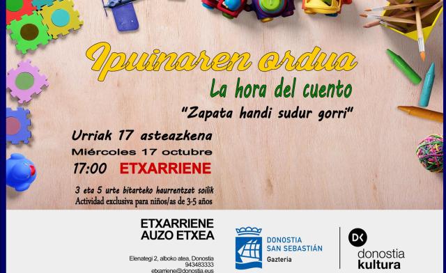 Archivado en Aisialdia/Ocio, Auzobizitza/Vida de barrio, Bizilagunak/Ciudadanos, Ekintzak/Actividades, Eragile sozialak/Agentes Sociales, Etxarriene, Haurtxoko, Iragarkiak/Anuncios, Partaidetza/Participación, Udaletxea/Ayuntamiento, Zerbitzuak/Servicios · Tagged with asteazkena, auzoa, barrio, bost, cinco, cuento, etxarriene, haurrak, hiru, hora, ipuina, martutene, miércoles, niñas, niños, octubre, ordua, tres, urria