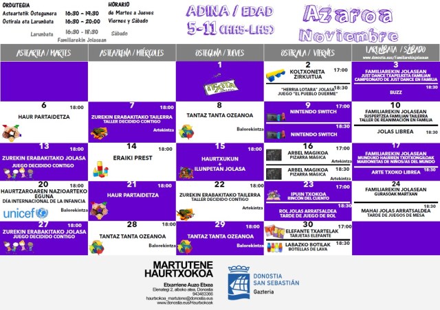 Haurtxokoa Martutene: Azaroko programazioa / programación de noviembre