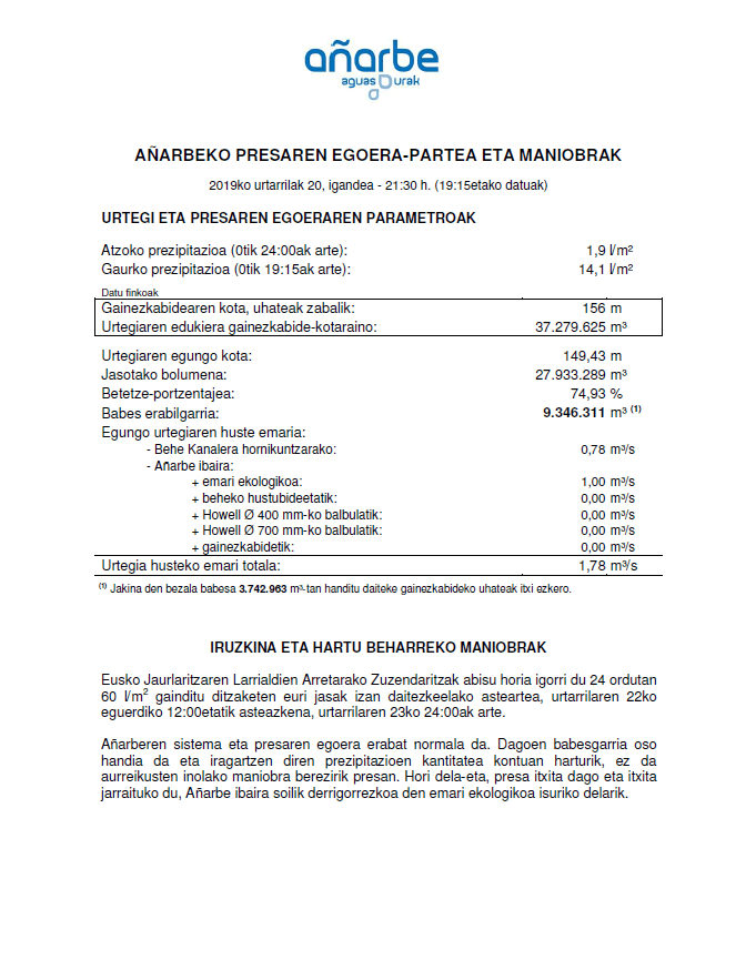 ← AÑARBEKO PRESAREN EGOERA-PARTEA ETA MANIOBRAK / PARTE DE SITUACIÓN Y MANIOBRAS EN LA PRESA DE AÑARBE · Posted on 22 de enero de 2019 · Leave a Comment · 681 × 874