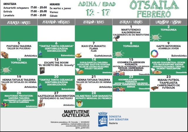 Gaztelekua Martutene: Otsaileko programazioa / programación de febrero