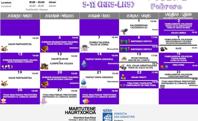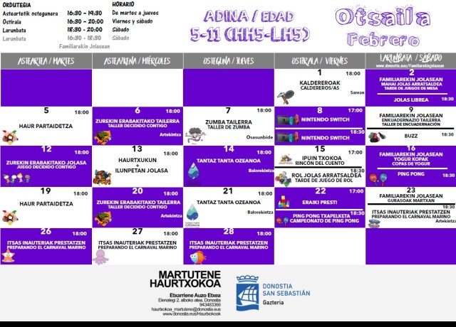 Haurtxokoa Martutene: Otsaileko programazioa / programación de febrero