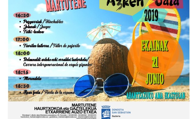 Archivado en Aisialdia/Ocio, Auzobizitza/Vida de barrio, Bizilagunak/Ciudadanos, Ekintzak/Actividades, Eragile sozialak/Agentes Sociales, Etxarriene, Gazteleku, Haurtxoko, Iragarkiak/Anuncios, Partaidetza/Participación, Udaletxea/Ayuntamiento, Zerbitzuak/Servicios · Tagged with aparra, auzoa, barrio, ekaina, espuma, etxarriene, fiesta, gazteak, gaztelekua, haurtxokoa, hinchables, ikastola, jaia, junio, martutene, puzgarriak, tailerrak, talleres, umeak
