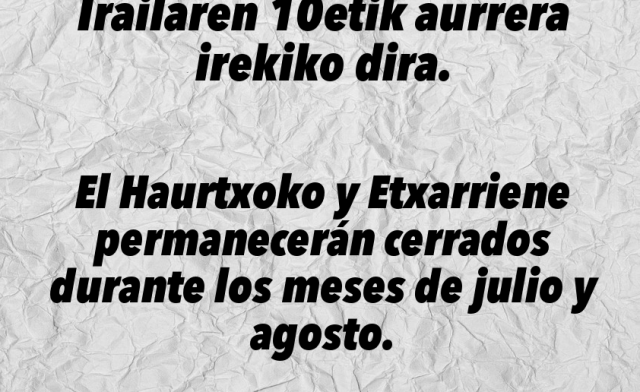 Archivado en Aisialdia/Ocio, Auzobizitza/Vida de barrio, Bizilagunak/Ciudadanos, Ekintzak/Actividades, Eragile sozialak/Agentes Sociales, Etxarriene, Haurtxoko, Iragarkiak/Anuncios, Partaidetza/Participación, Udaletxea/Ayuntamiento, Zerbitzuak/Servicios · Tagged with abuztua, agosto, etxarriene, haurtxoko, itxiera, julio, septiembre, uda, uztaila, verano