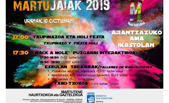 Archivado en Aisialdia/Ocio, Auzobizitza/Vida de barrio, Bizilagunak/Ciudadanos, Ekintzak/Actividades, Eragile sozialak/Agentes Sociales, Etxarriene, Gazteleku, Haurtxoko, Iragarkiak/Anuncios, Partaidetza/Participación, Udaletxea/Ayuntamiento, Zerbitzuak/Servicios · Tagged with auzoa, barrio, eskulanak, festa, fiesta, gaztelekua, haurtxokoa, hinchables, holi, ikastola, jaia, manualidades, martutene, patioa, puzgarriak, tailerrak, talleres, txiki, txupinazo