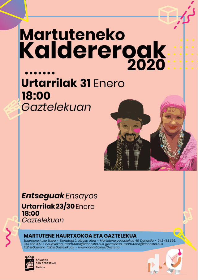 Archivado en Aisialdia/Ocio, Auzobizitza/Vida de barrio, Bizilagunak/Ciudadanos, Ekintzak/Actividades, Eragile sozialak/Agentes Sociales, Etxarriene, Gazteleku, Haurtxoko, Iragarkiak/Anuncios, Partaidetza/Participación, Udaletxea/Ayuntamiento, Zerbitzuak/Servicios · Tagged with auzoa, barrio, caldereras, caldereros, ensayos, entseguak, fiesta, gaztelekua, haurtxokoa, jaia, kaldereroak, Marutene, ostirala, urtarrila, viernes