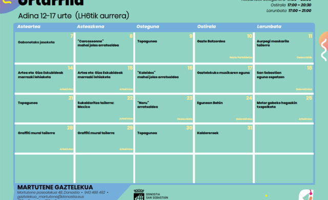 Martuteneko Gaztelekuak, urtarrileko programaketarekin jarraituko du. Horren barne, aste honetan honako ekintzetan parte hartzeko aukera izango dute 12-17 urte bitarteko nerabeek: