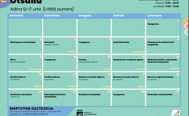 Gaztelekua Martutene: Otsaileko programazioa / Programación de febrero