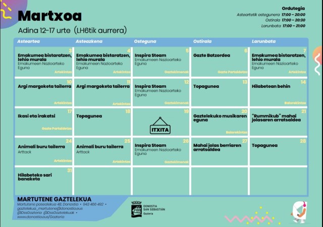 Gaztelekua Martutene: Martxoko programazioa / Programación de marzo