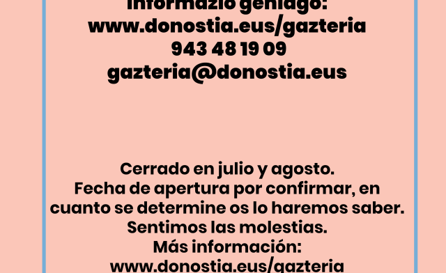 Archivado en Asociación Sarroeta auzo elkartea · Tagged with abuztua, agosto, ayuntamiento, cierre, donostia, etxarriene, gazteleku, haurtxoko, iraila, itxiera, julio, martutene, san sebastián, septiembre, udala, udara, uztaila, verano