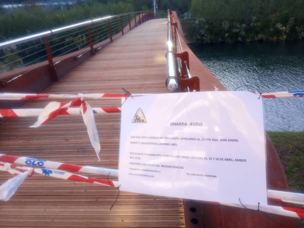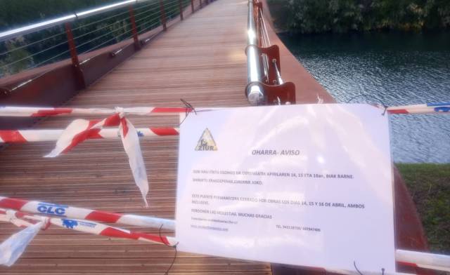Zubia obrengatik itxita apirilak 14, 15, 16