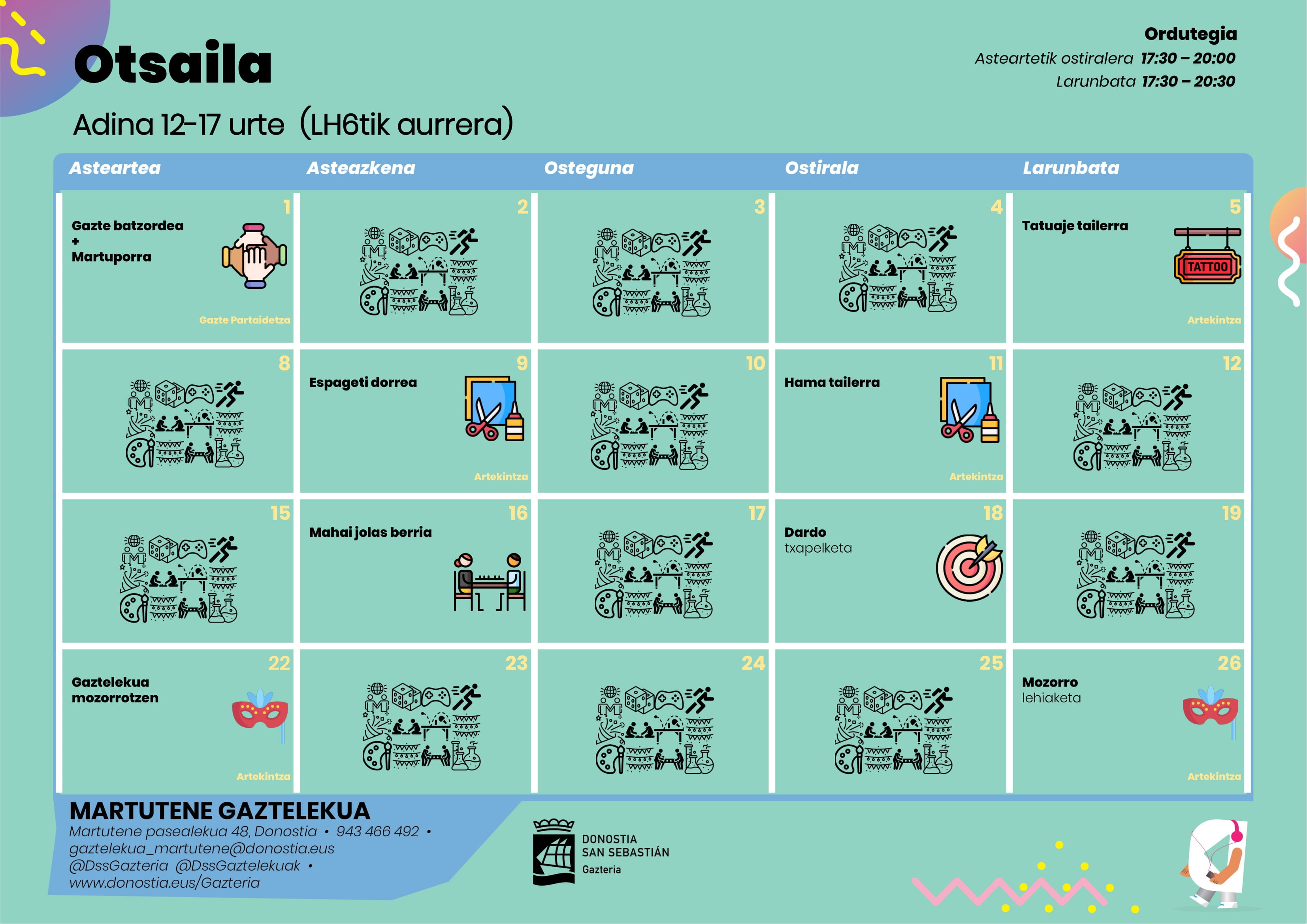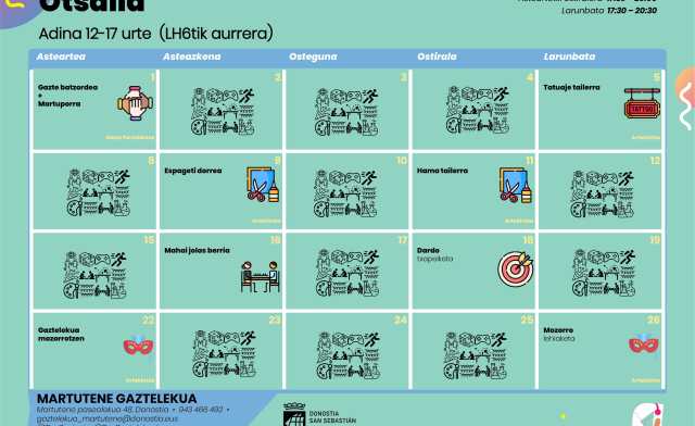 Archivado en Aisialdia/Ocio, Bizilagunak/Ciudadanos, Ekintzak/Actividades, Eragile sozialak/Agentes Sociales, Etxarriene, Gazteleku · Tagged with febrero, gaztelekua, martutene, otsaila, programación, programazioa