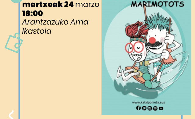 NOTA: Ha habido un cambio de localización y el espectáculo se llevara adelante en la Ikastola Arantzazuko Ama, con un mayor aforo. Para conseguir invitaciones será necesario inscribirse previamente a través del correo electrónico etxarriene@donostia.eus, llamando al 943483333 o acercándose a Etxarriene de lunes a sábado de 16:30 a 20:00h. (máximo 4 invitaciones). Se priorizará a las personas que acudan presencialmente a por las invitaciones. El plazo para inscribirse se abrirá 5 días antes del evento (el 19 de marzo) y las invitaciones se podrán recoger hasta 30 minutos antes del comienzo del espectáculo.