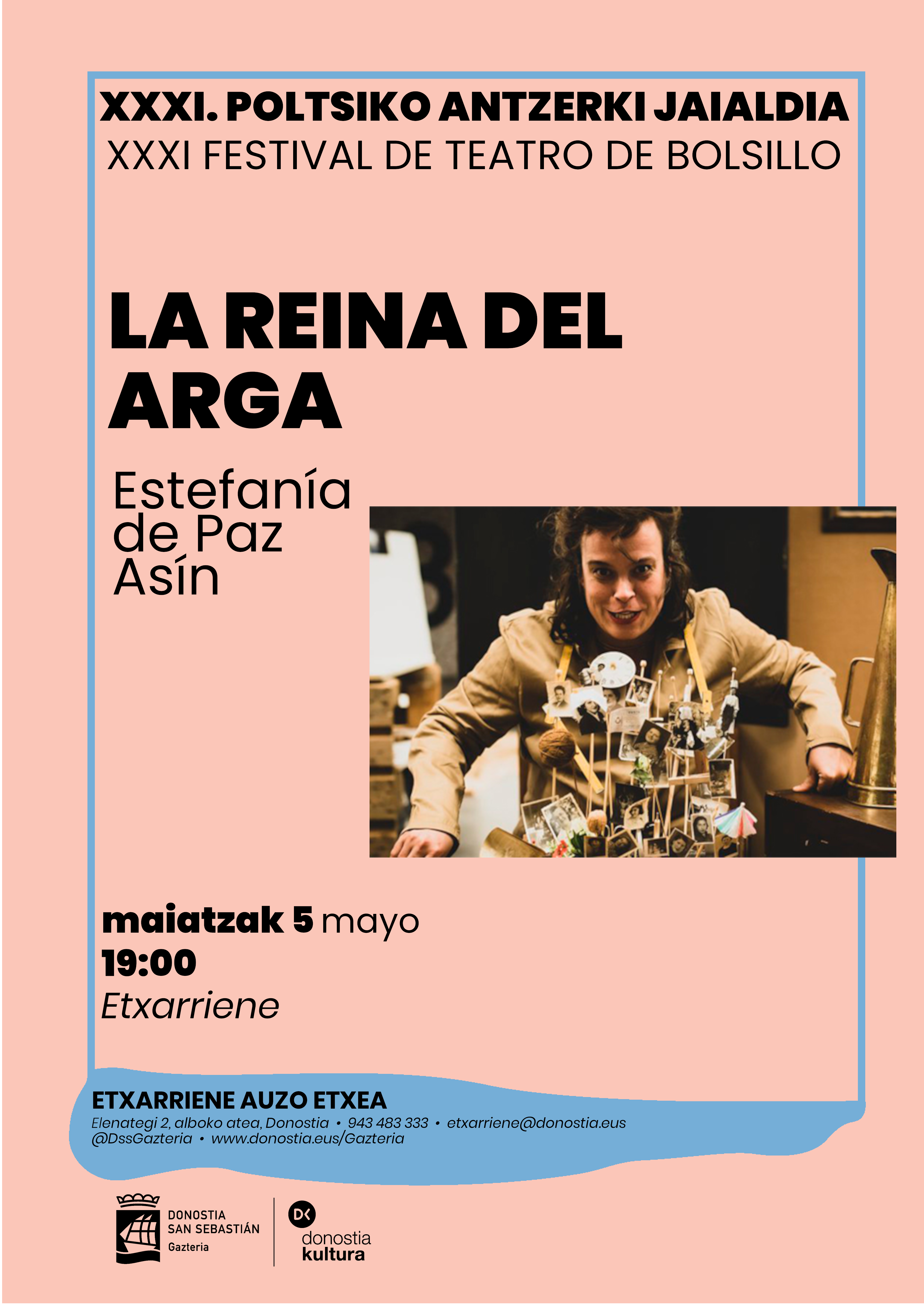 Archivado en Auzobizitza/Vida de barrio, Bizilagunak/Ciudadanos, Ekintzak/Actividades, Eragile sozialak/Agentes Sociales, Etxarriene, Loiola kultur etxea/ Centro Cultural de Loiola · Tagged with donostia, estefania de paz asin, etxarriene, la reina del arga, martutene, poltsiko antzerkia, teatro de bolsillo