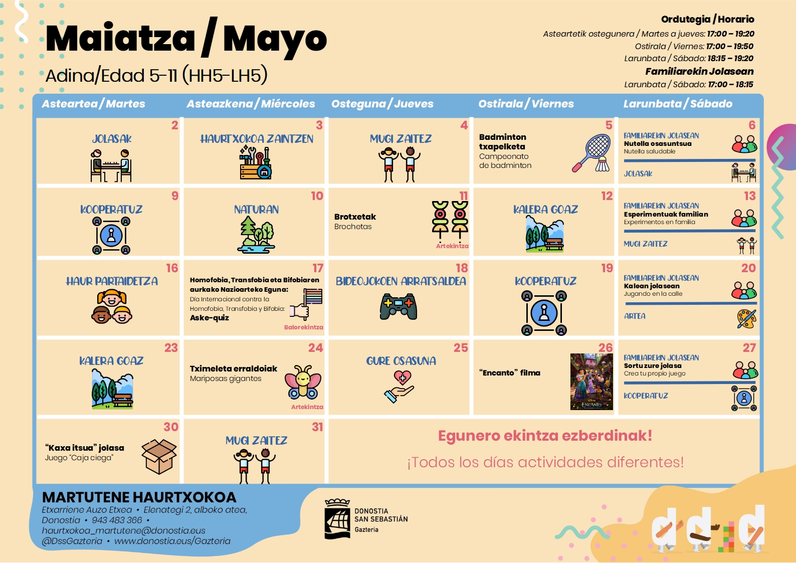 MARTUTENE HAURTXOKOA: MAIATZEKO PROGRAMAZIOA/ PROGRAMACIÓN DE MAYO