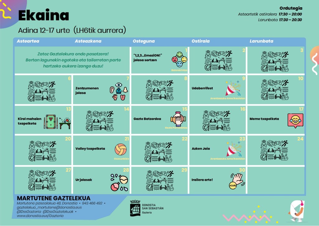 Archivado en Aisialdia/Ocio, Gazteleku, Zerbitzuak/Servicios · Tagged with adolescentes, donostia, ekaina, gaztelekua, junio, martutene, martutene gaztelekua, nerabeak, programación, programaketa
