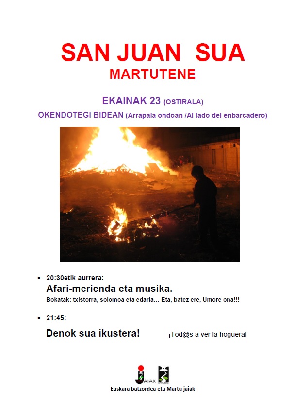 Archivado en Aisialdia/Ocio, Auzobizitza/Vida de barrio, Bizilagunak/Ciudadanos, Euskara Batzordea, Jaiegunak/Festividades · Tagged with hoguera, martutene, san juan, san juan sua