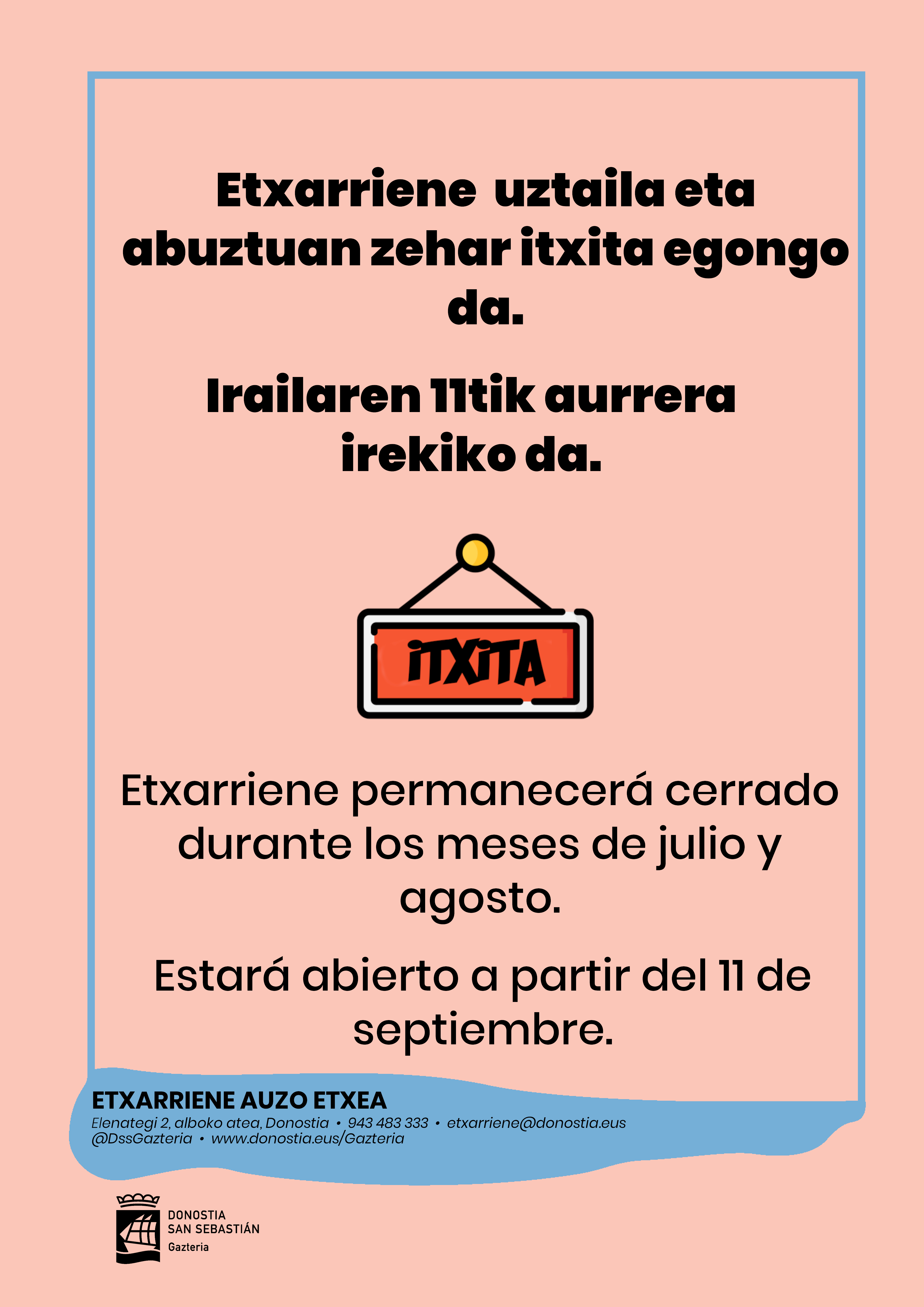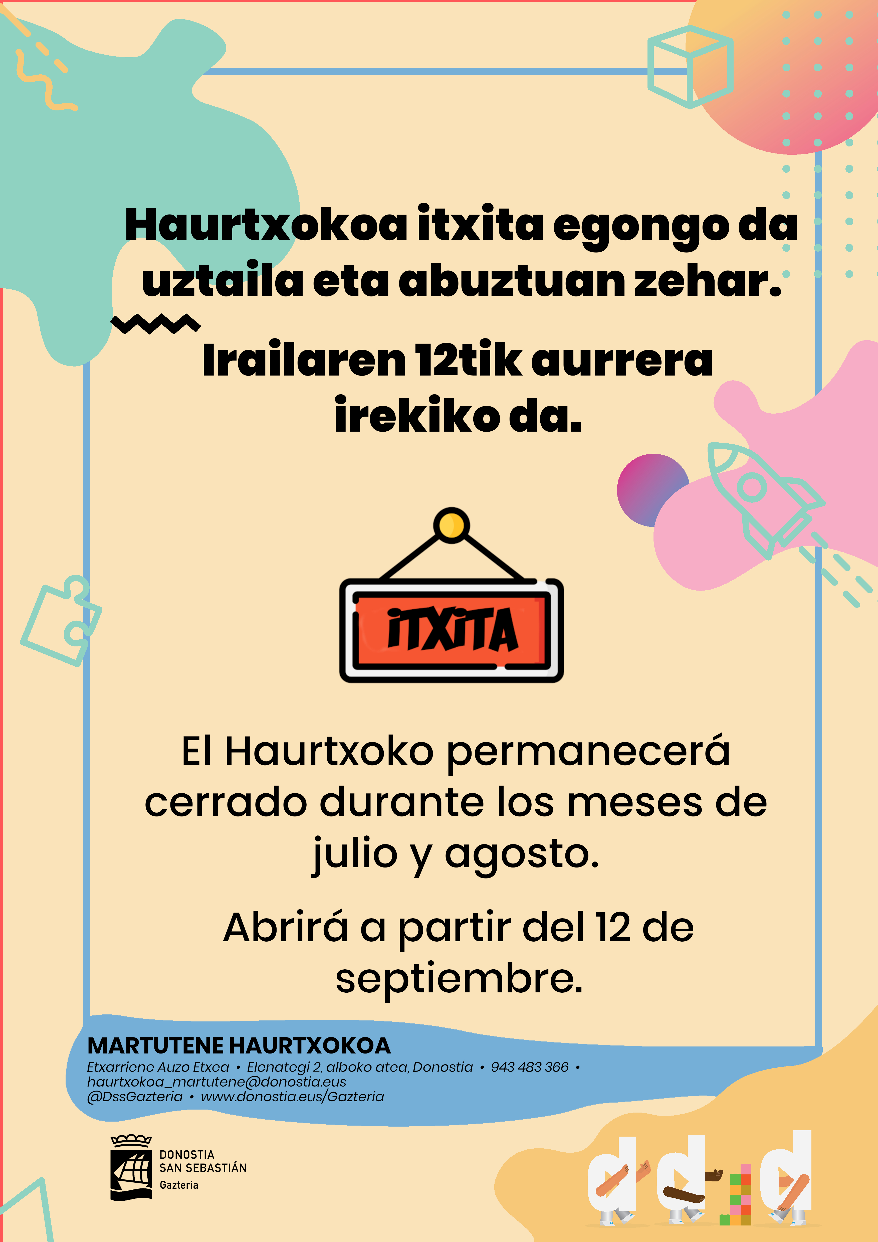 ETXARRIENE, HAURTXOKOA ETA GAZTELEKUAREN UDAKO ITXIERA / CIERRE DE VERANO DE ETXARRIENE, HAURTXOKO Y GAZTELEKU