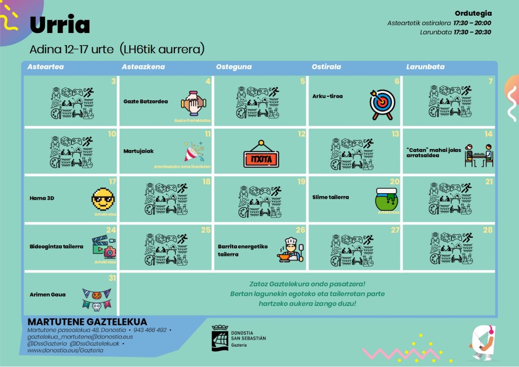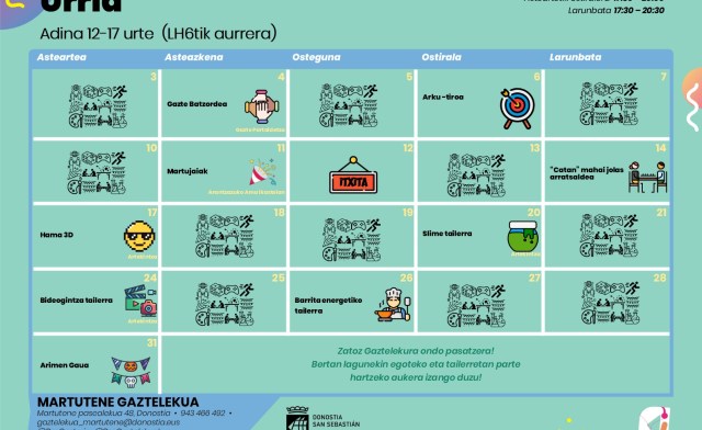 Archivado en Aisialdia/Ocio, Gazteleku, Zerbitzuak/Servicios · Tagged with adolescentes, auzoa, barrio, donostia, gaztelekua, martutene, martutene gaztelekua, nerabeak, octubre, programación, programaketa, urria
