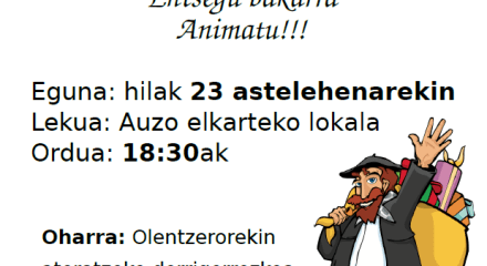 Categoría Asociación de Jubilados Lurrargi jubilatu elkartea, Asociación Sarroeta auzo elkartea, Auzobizitza/Vida de barrio, Auzoko jaiak/Fiestas del Pilar, Bizilagunak/Ciudadanos, Euskara Batzordea, Kirola/Deporte, Partaidetza/Participación, Polígono 27 poligonoa, Sociedad gastronómica El Pilar, Txapel Aundi, Udaletxea/Ayuntamiento · Tagged with auzo, aviso, bilera, elkartea, isabel, reunión, Sarroeta, teléfono, vecinos