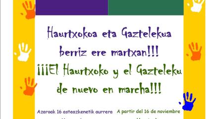 Haurtxokoa eta Gaztelekua berriro martxan! / ¡El Haurtxoko y el Gazteleku de nuevo en marcha