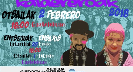 Archivado en Aisialdia/Ocio, Auzobizitza/Vida de barrio, Bizilagunak/Ciudadanos, Ekintzak/Actividades, Eragile sozialak/Agentes Sociales, Etxarriene, Gazteleku, Haurtxoko, Iragarkiak/Anuncios, Partaidetza/Participación, Udaletxea/Ayuntamiento, Zerbitzuak/Servicios · Tagged with auzoa, baile, barrio, caldereras, caldereros, dantza, disfraces, ensayo, entsegua, febrero, gaztelekua, haurtxokoa, kaldereroak, martutene, música, mozorroak, musika, otsaila