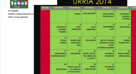 Archivado en Aisialdia/Ocio, Auzobizitza/Vida de barrio, Bizilagunak/Ciudadanos, Ekintzak/Actividades, Eragile sozialak/Agentes Sociales, Etxarriene, Gazteleku, Iragarkiak/Anuncios, Partaidetza/Participación, Udaletxea/Ayuntamiento, Zerbitzuak/Servicios · Tagged with 2014, gazteleku, martutene, octubre, programación, programazioa, urria