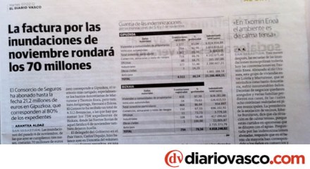 La factura por las inundaciones de noviembre rondará los 70 millones (Diario Vasco, 7 de Febrero)