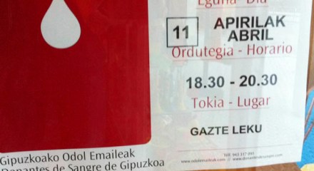 Hoy: donaciones de sangre en Etxarriene (18:30h – 20:30h)