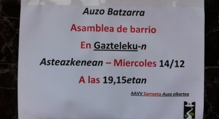 Asamblea de vecinos hoy en el Gazteleku a las 19:15